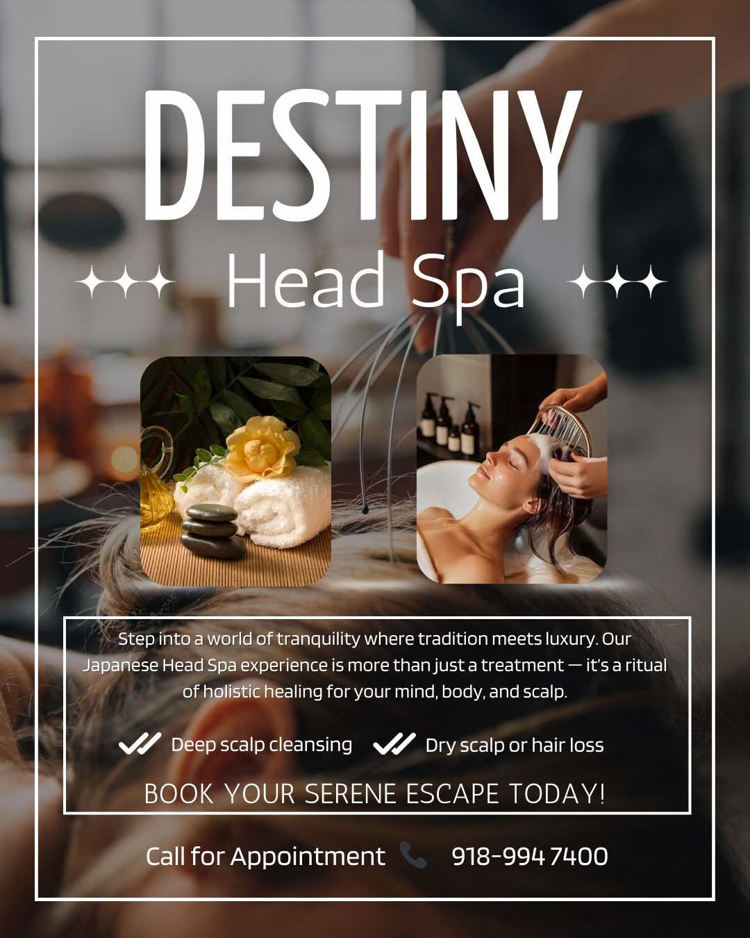 Destiny Nails Lounge and Head Spa, we blend elegance, creativity, and artistry to bring you a nail experience like no other. From classic to unique nail enhancements, our goal is to make your nails a canvas of beauty and self-expression. Discover a world of luxury and impeccable service.